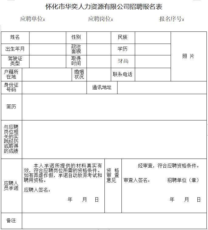 懷化市華奕人力資源公司招聘公告
