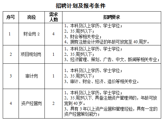 我公司于2022年9月7日至9月16日通過懷化新聞網、懷化人才網、懷化市城市建設投資有限公司網站及懷化市城市建設投資有限公司公眾微信號等面向社會發(fā)布招聘信息。截至9月16日,部分崗位報名人員未達到開考人數比例。經第一次延長報名后,仍未達到開考人數要求,經公司研究決定,對以下崗位的招聘要求做適當調整: