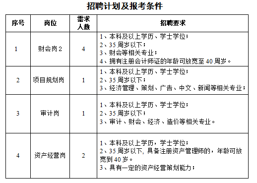 我公司于2022年9月7日至9月16日通過(guò)懷化新聞網(wǎng)、懷化人才網(wǎng)、懷化市城市建設(shè)投資有限公司網(wǎng)站及懷化市城市建設(shè)投資有限公司公眾微信號(hào)等面向社會(huì)發(fā)布招聘信息。截至9月16日,部分崗位報(bào)名人員未達(dá)到開(kāi)考人數(shù)比例。經(jīng)第一次延長(zhǎng)報(bào)名后,仍未達(dá)到開(kāi)考人數(shù)要求,經(jīng)公司研究決定,對(duì)以下崗位的招聘要求做適當(dāng)調(diào)整: