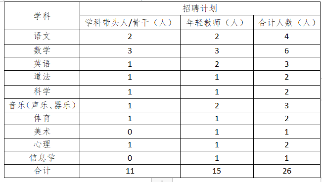 優(yōu)秀教師和行政崗位招聘計(jì)劃