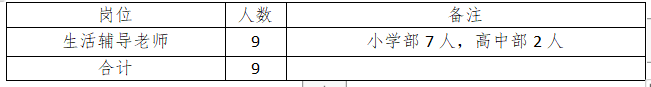 3、生活指導(dǎo)老師年齡45周歲以下,特別優(yōu)秀的可適當(dāng)放寬年齡,其他行政、教輔崗位人員年齡35周歲以下。