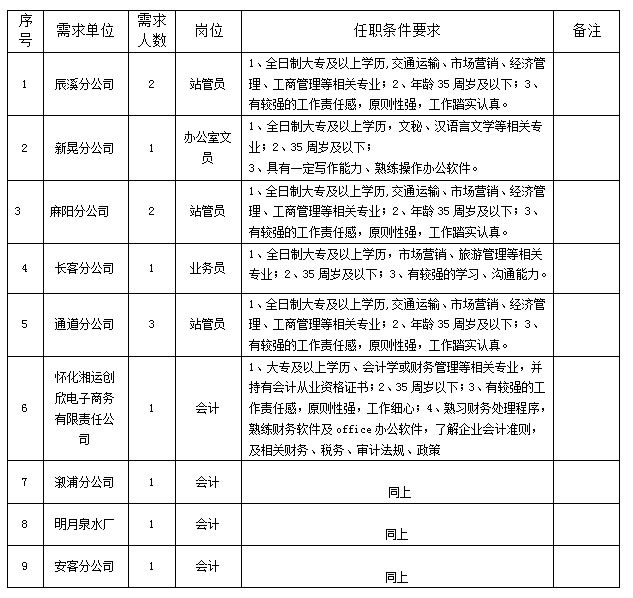 我公司于2023年2月23日至3月6日通過(guò)懷化人才網(wǎng)面向社會(huì)發(fā)布了招聘信息。截止3月6日,以下基層縣市(區(qū))分公司崗位仍無(wú)人報(bào)名,各基層單位又急需補(bǔ)充該崗位工作人員,鑒于這種情況,經(jīng)集團(tuán)公司研究決定,對(duì)以下崗位的招聘延長(zhǎng)報(bào)名時(shí)間,崗位具體要求如下 :