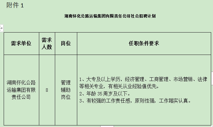 附件1:湖南懷化公路運(yùn)輸集團(tuán)有限責(zé)任公司2024年社會招聘計(jì)劃