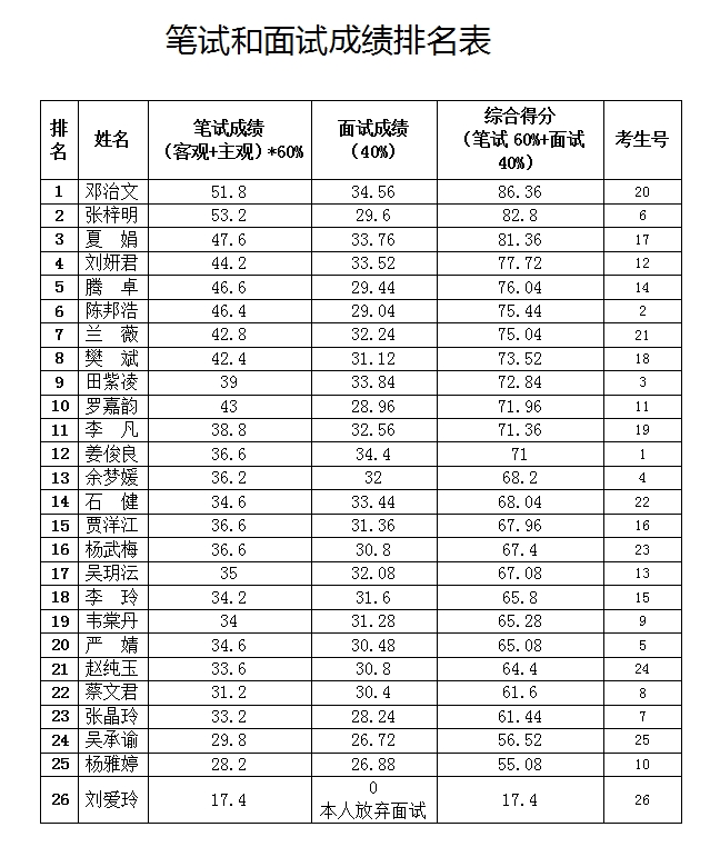 附:筆試和面試成績排名表