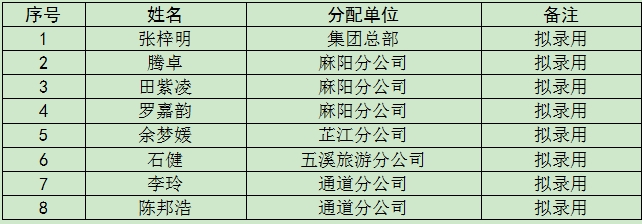 根據(jù)《湖南懷化公路運輸集團有限責(zé)任公司招聘公告》的要求,經(jīng)報名、資格審查、筆試、面試、體檢等程序,擬錄用以下人員,現(xiàn)予以公示。公示期間如對擬錄用人員有異議或有其他問題,請以書面形式并署真實姓名和聯(lián)系方式,及時向湖南懷化公路運輸集團有限責(zé)任公司紀(jì)檢監(jiān)察部門反映。材料郵寄(送達)地址:懷化市鶴城區(qū)迎豐西路238號(懷運集團紀(jì)檢監(jiān)察室),經(jīng)公開調(diào)查核實,如果公示對象存在影響錄用問題的將取消錄用資格。
