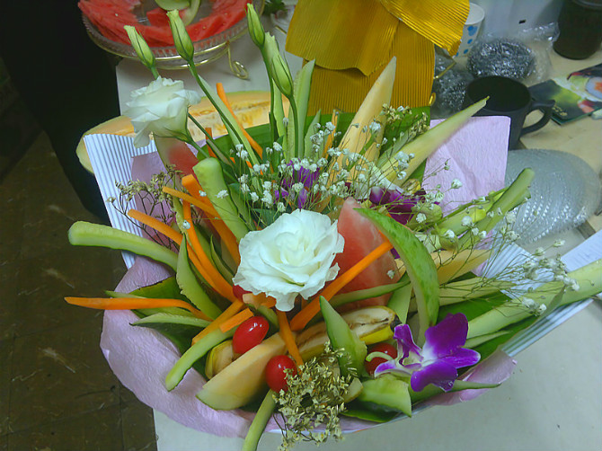 里面只有黃瓜,胡蘿卜,圣女果,西瓜,哈密瓜,藝術和吃結合 |