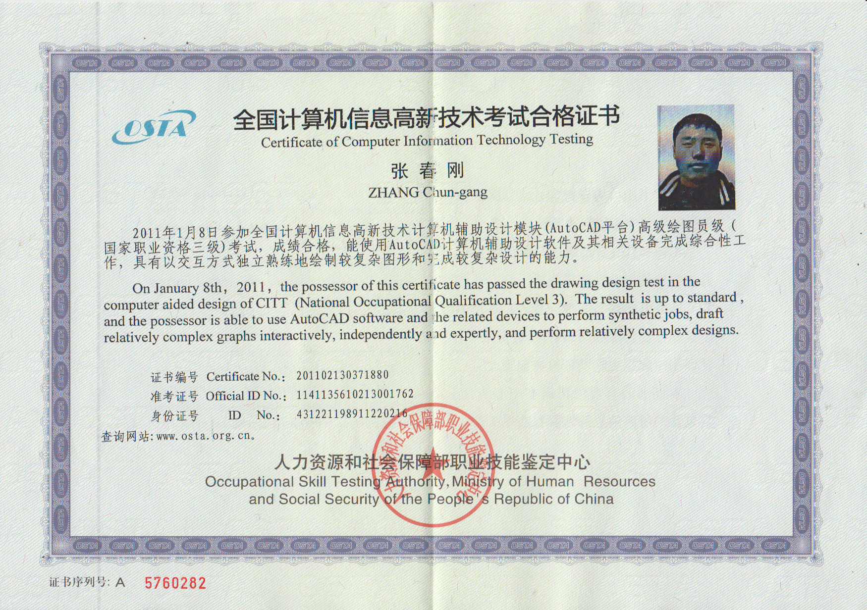 能讀懂施工圖紙;懂電腦,對電腦硬件有一定的認識,能處理電腦常見的問題,能熟練使用天正、CAD、office、南方cass、PKPM等辦公軟件;會使用全站儀、水準儀等工程測量工具。
