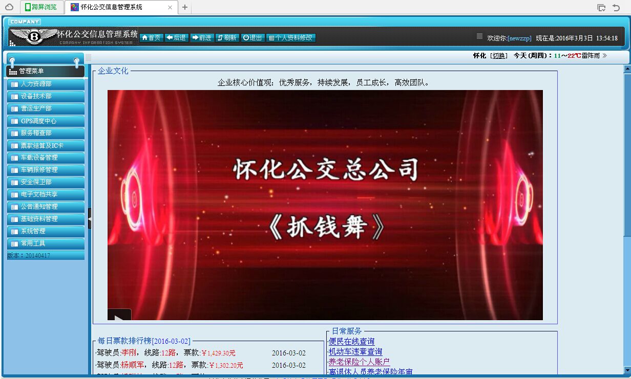 本系統(tǒng)包含了幾個重要部門的業(yè)務(wù)管理,包括:人力資源部、設(shè)備技術(shù)部、營運生產(chǎn)部、服務(wù)稽查部、票款結(jié)算中心、安全保衛(wèi)部等。 |