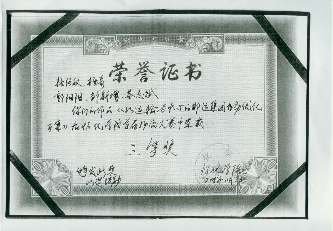根據(jù)邯運(yùn)集團(tuán)的案例資料,與團(tuán)隊(duì)成員合作,分析其內(nèi)外部環(huán)境,制定解決方案,榮獲懷化學(xué)院首屆物流大賽三等獎。 |