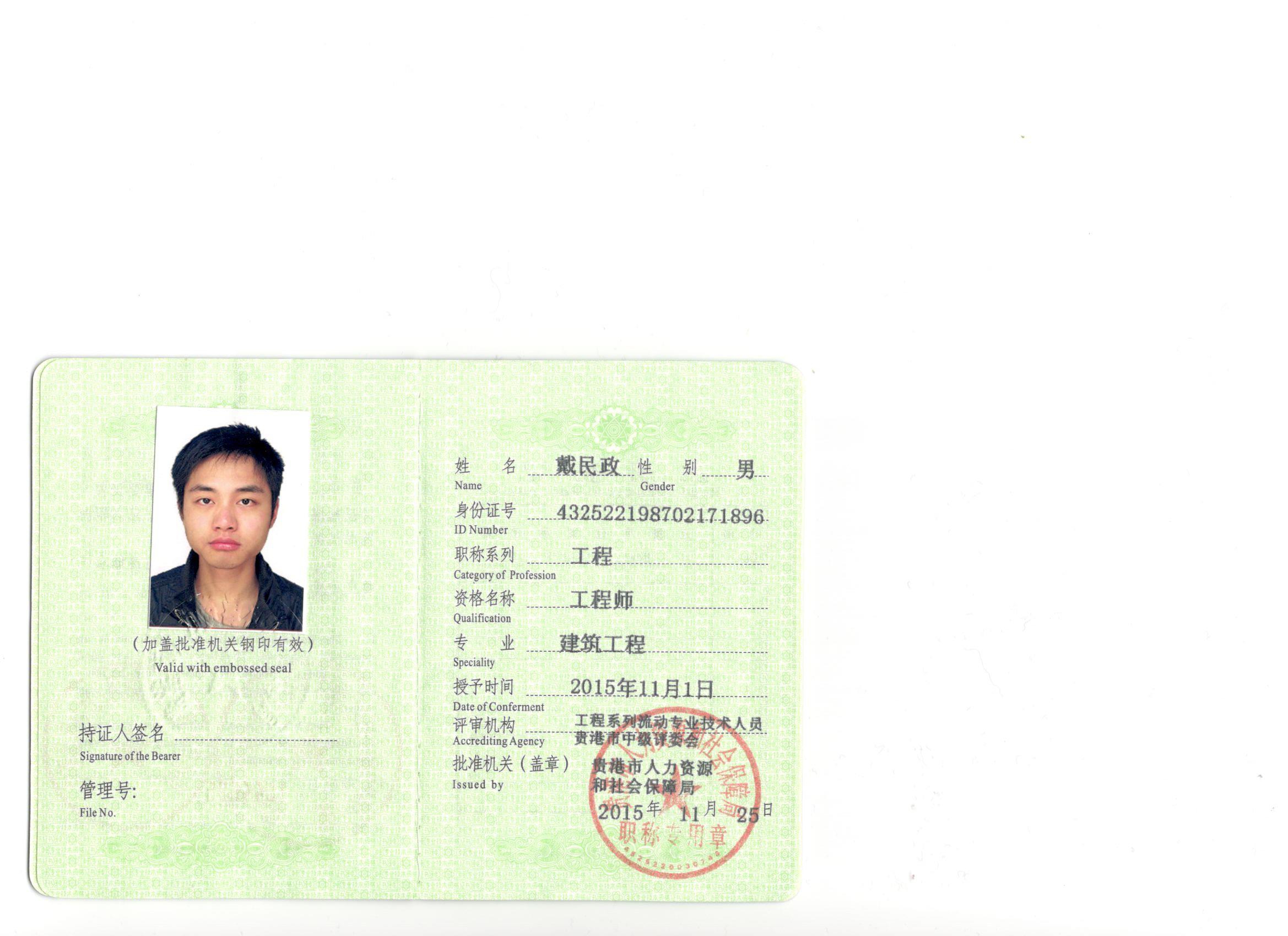 | 戶 口: 湖南省 懷化市 |