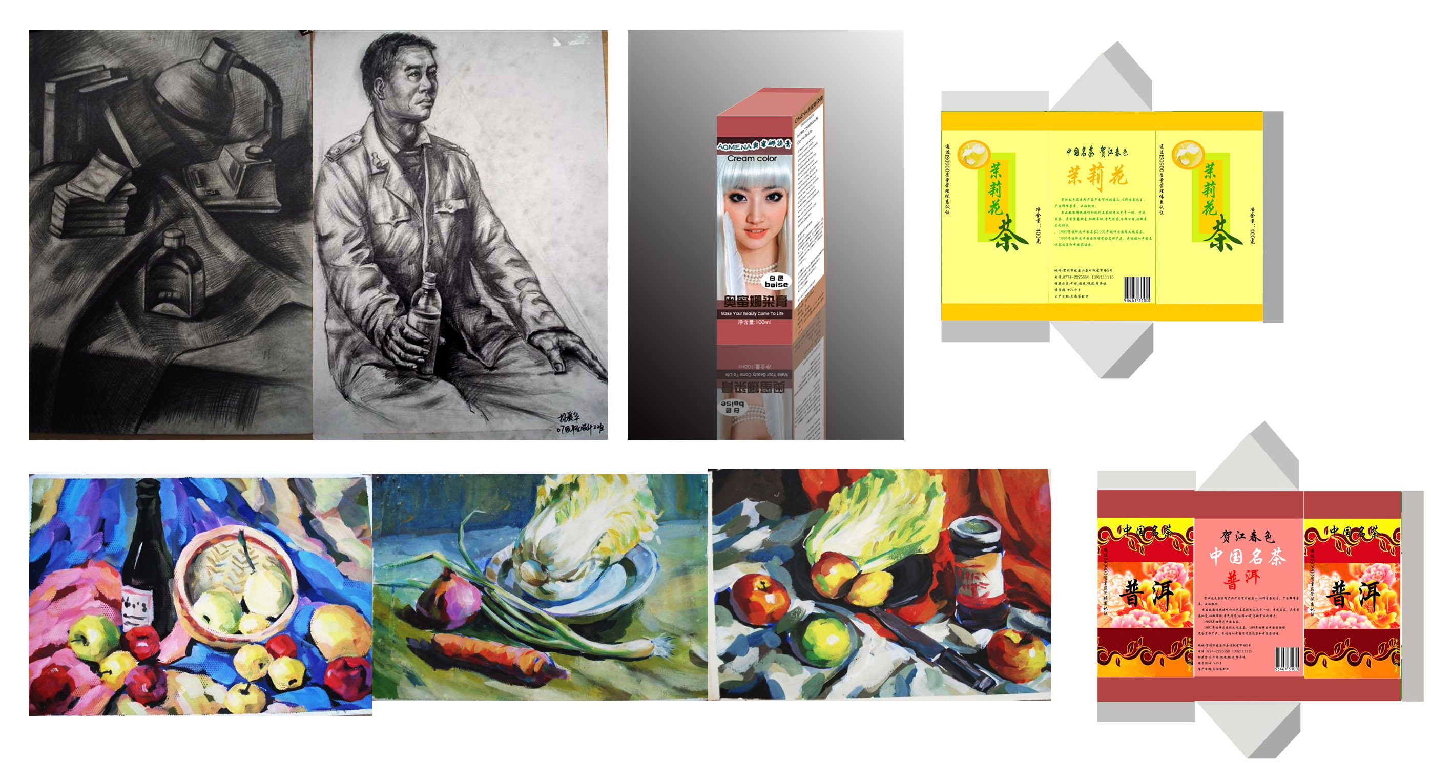 作品中,選了幾幅我的素描,色彩及包裝設(shè)計。